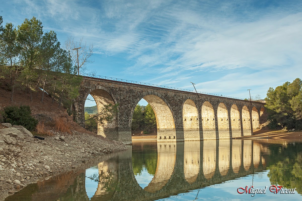 Mañana excelente para conseguir reflejos en el agua, ya que el dia ha amanecido sin viento que dificultara dicha practica. Os dejo una foto de hoy en el Pantano del Regajo, en uno de los puentes menos habituales o menos vistos.