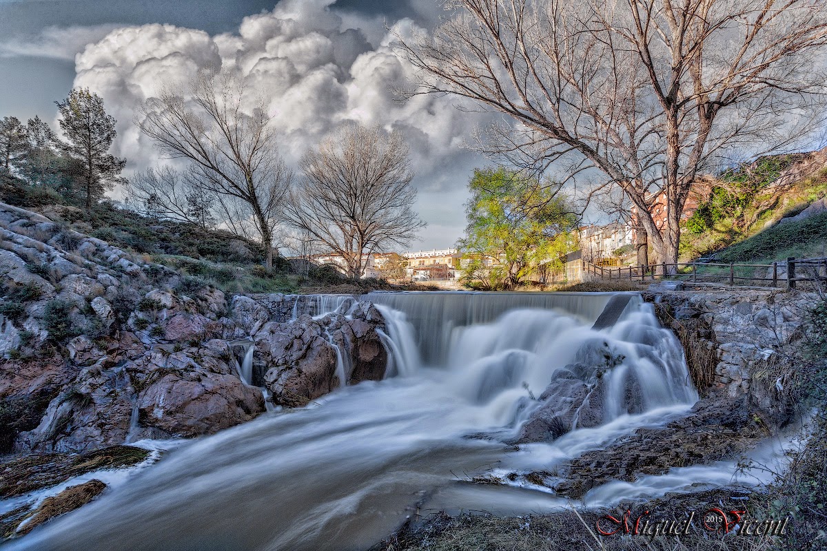 Ayer miercoles salí un rato a ver lo que había quedado de todo un fin de semana pasado por agua. Aun así y después de un par de días de tregua que nos habia dado el tiempo, aun quedaban estampas muy bonitas por fotografiar, como por ejemplo los Chorradores de Jerica. Lastima que ayer era un día de mucho aire, y si me disponía hacer una larga exposición (de unos 10 segundos) para disfrutar del movimiento de las aguas del Rio Palancia a su paso por Jerica, tendría el problema de que los arboles saldrían movidos. A este fuerte viento, había que añadir otro handicap, que no había ninguna nube. Las nubes son un complemento ideal para la fotografía de Paisaje. Pues con todos esos elementos negativos me dispuse a realizar una foto que subsanase todos estos problemas comentados. Tuve que utilizar tres fotografías para conseguir una foto que a mi me gustara, así que hice una foto para que los arboles saliesen estáticos, otra para que el agua diese la sensación de movimiento y la tercera unas nubes de archivo que encontré en una carpeta de mi ordenador, al final creo que ha quedado bastante bien. A ver que os parece a vosotros.